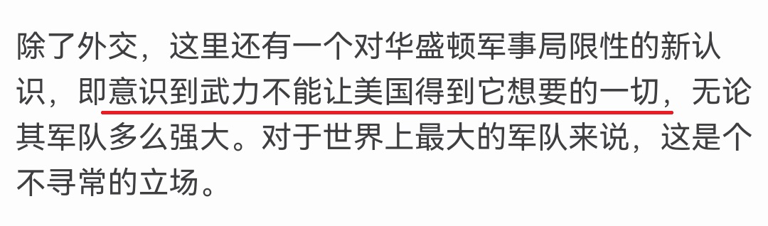 作者認為,美國學會了妥協,學會了退讓,學會了不再針鋒相對,暫且忘掉“震驚和敬畏”,這就是這個BBC記者口中所謂的“謙遜的藝術”,在當下這樣一個謹慎和顧慮重重的時代裏,尤其是對“在本世紀初不僅入侵了一個而是兩個國家的美國”而言,顯得彌足珍貴。