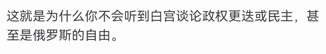 按照作者的想法,如果俄烏衝突轉變成俄美衝突的話,俄羅斯民眾就會更加團結在普京周圍,所以“你不會聽到白宮談論政權更迭或民主,甚至是俄羅斯的自由”。