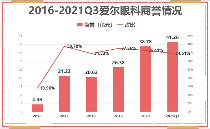 從2016的4.48億,再到2021第三季度的41.26億,隨着收購的公司不斷增多,商譽值越來越高,不確定風險也隨之增大。不得不説,愛爾多少有些“賭徒”心理了。