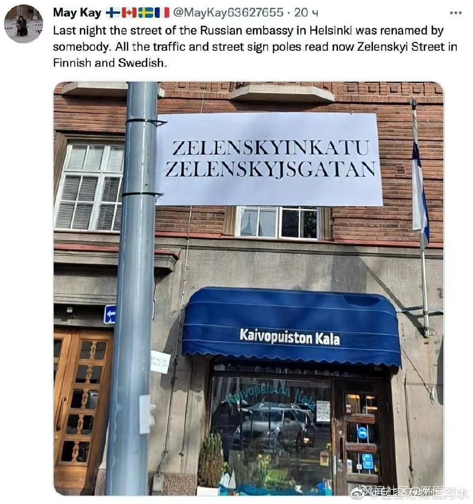 芬蘭為了支持澤元首,把一條街的名字改成了“澤連斯基街”。