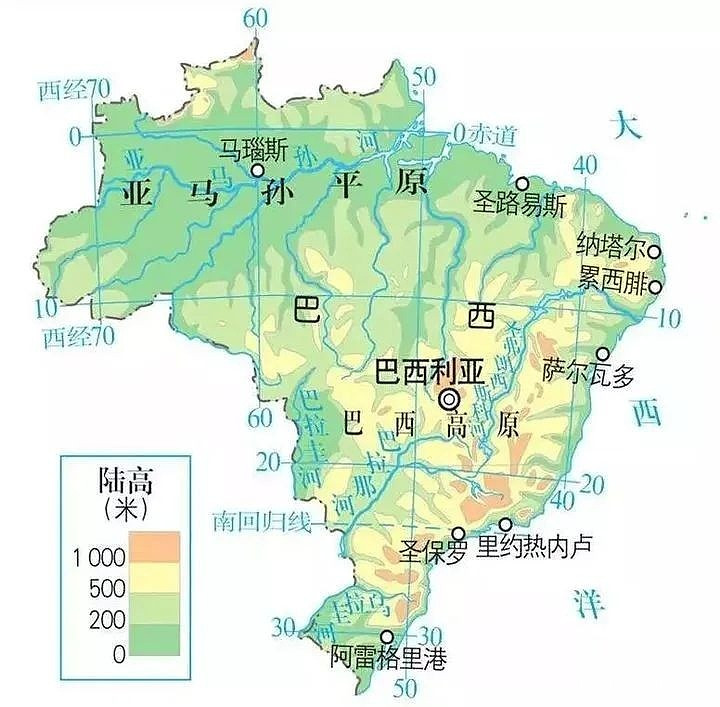 巴西是南美最大的國家,國土面積為851萬平方千米