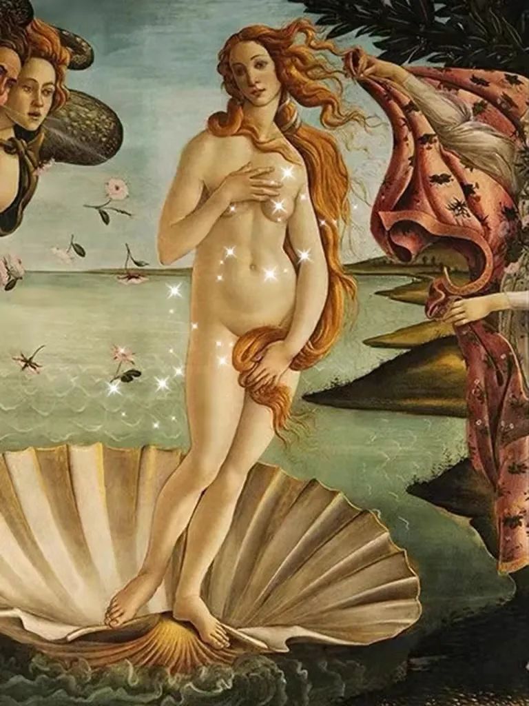 另外,她的一組寫真與波提切利的《維納斯的誕生》也幾乎是一模一樣。
