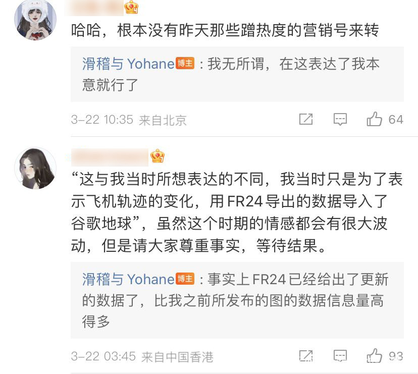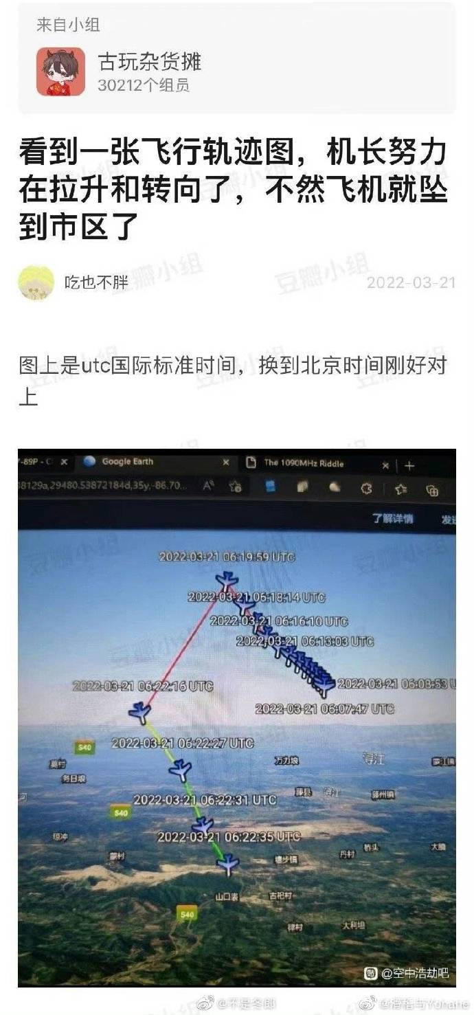 這張圖有很多人看到過吧,今天看到有人發聲,稱自己是這張圖的製作者。@滑稽與Yohane 説,當時做圖時“只是為了表示飛機軌跡的變化”,後來有人“看圖説話”解讀為“為了避開市區努力在爬升和轉向了”,這與他當時想表達的不同。