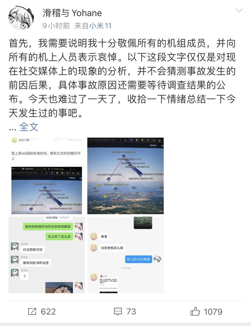 首先,我需要説明我十分敬佩所有的機組成員,並向所有的機上人員表示哀悼。以下這段文字僅僅是對現在社交媒體上的現象的分析,並不會猜測事故發生的前因後果,具體事故原因還需要等待調查結果的公佈。今天也難過了一天了,收拾一下情緒總結一下今天發生過的事吧。