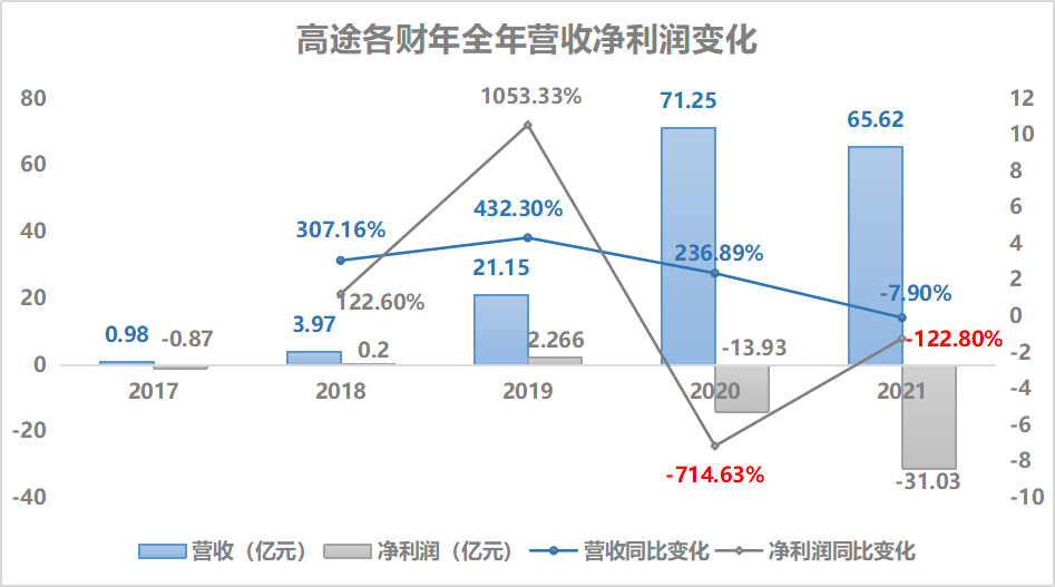 2021財年全年,高途錄得淨虧損31.03億元,超出上年虧損的13.93億元近122.80%。而這兩年間,高途已累虧約45億元,約是2018年、2019年盈利總和的18.3倍。