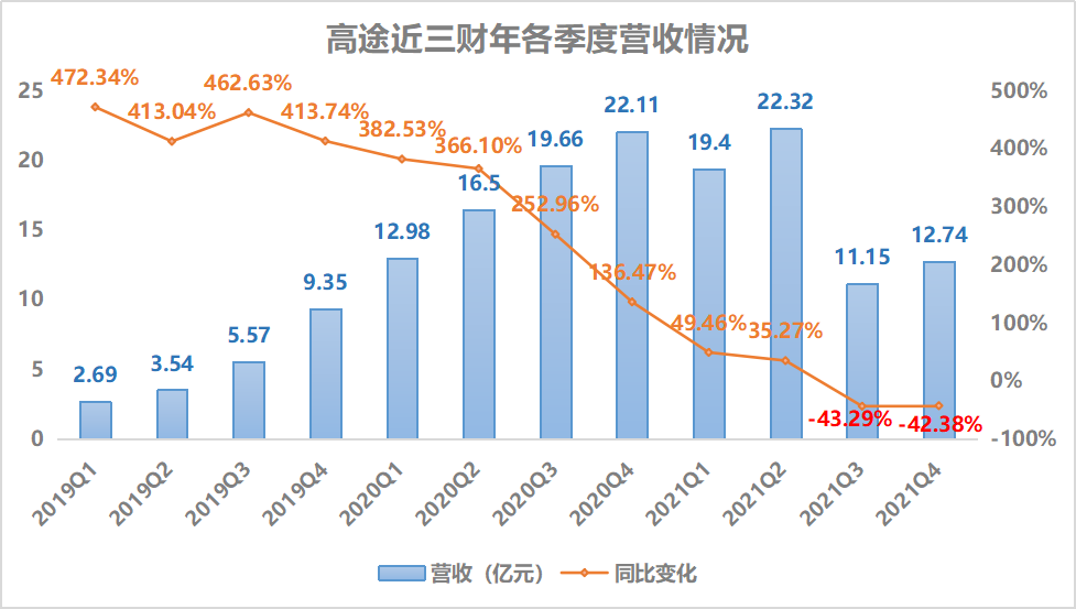 與淨利潤呈現的積極態勢不同,第四季度高途的營收規模出現了大幅收窄——單季度錄得營收12.74億元,去年同期為22.110億元,同比減少42.37%。
