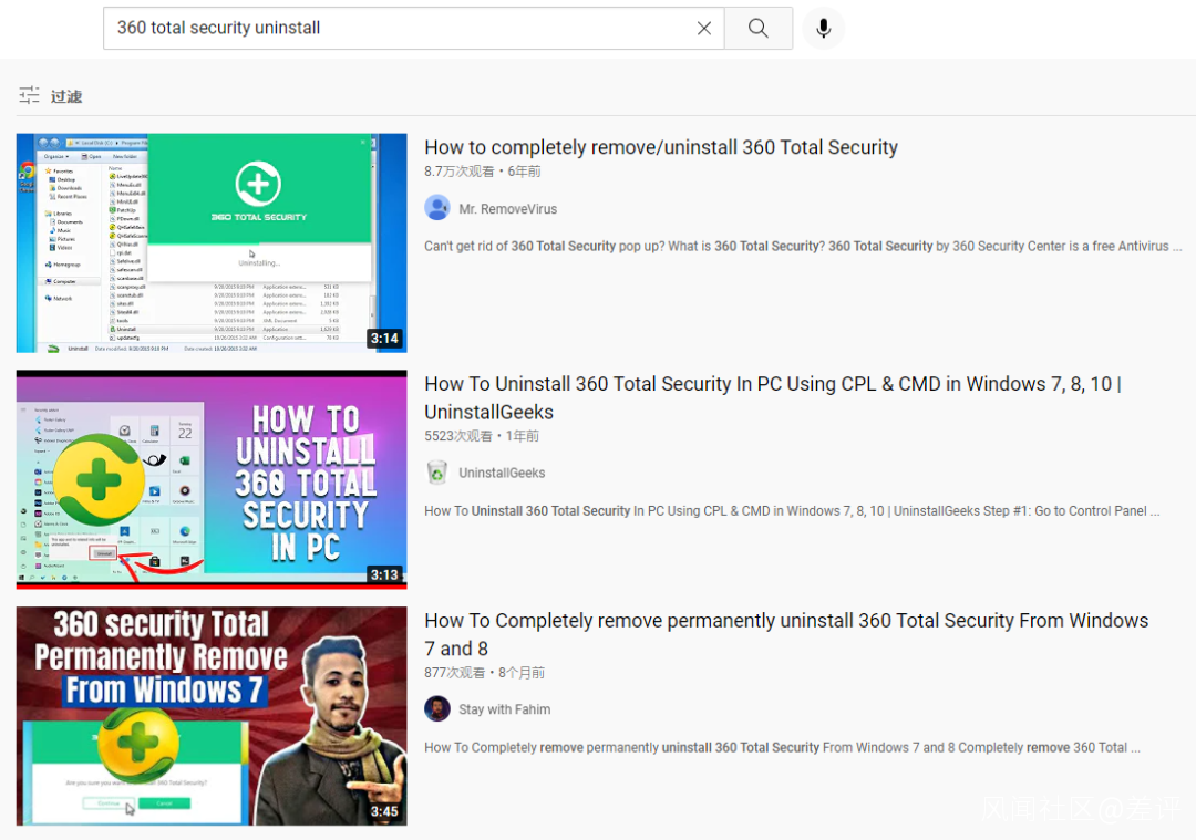 比如 YouTube 上,你甚至能找到一堆,專門「教你如何卸載 360 安全衞士」的教學視頻。