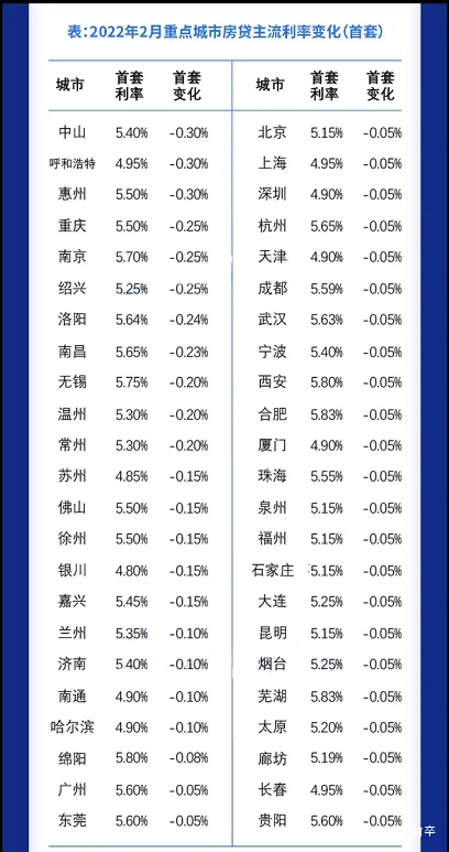 3月份,中國103個重點城市主流首套房貸利率為5.34%,二套利率為5.60%,分別較上月回落13個、15個基點。3月房貸利率創2019年以來月度最大降幅,房貸環境趨於寬鬆。