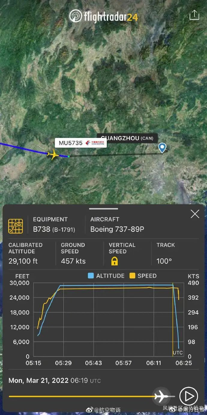 東航此次失聯航班號為MU5735,由昆明飛往廣州,機型波音737-800,原定起飛時間為13時10分,計劃落地時間為15時05分。