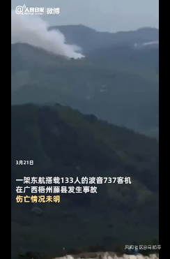 2. 載132人東航波音737客機廣西梧州墜毀,2分鐘從8000米墜落地面