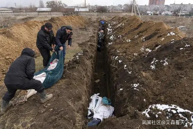 3月9日,俄羅斯軍隊持續猛烈炮擊,人們無法安葬死者,只能草草在簡陋墳墓集體埋葬。