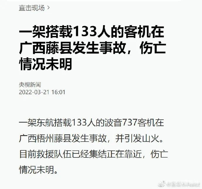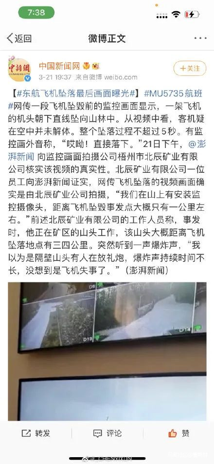 可惜事與願違,下午4點,央視新聞發佈消息,證實東航確實有一架波音737民航客機發生事故,引發山火。