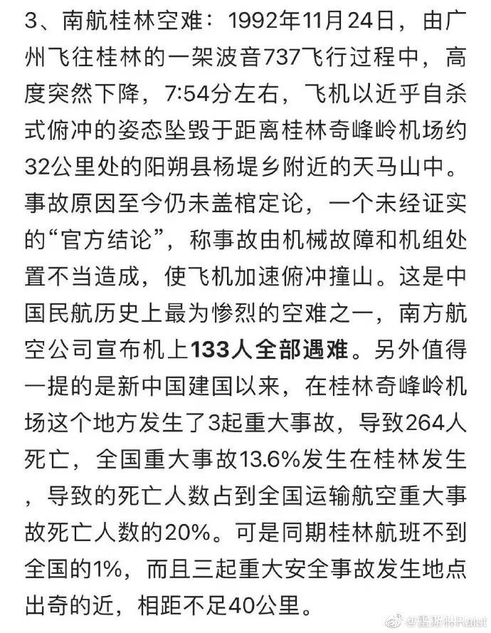 不只是美國,30年前,也就是1992年的廣西桂林也發生過慘烈空難。