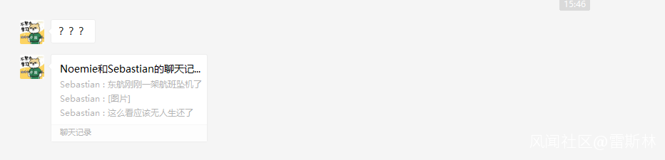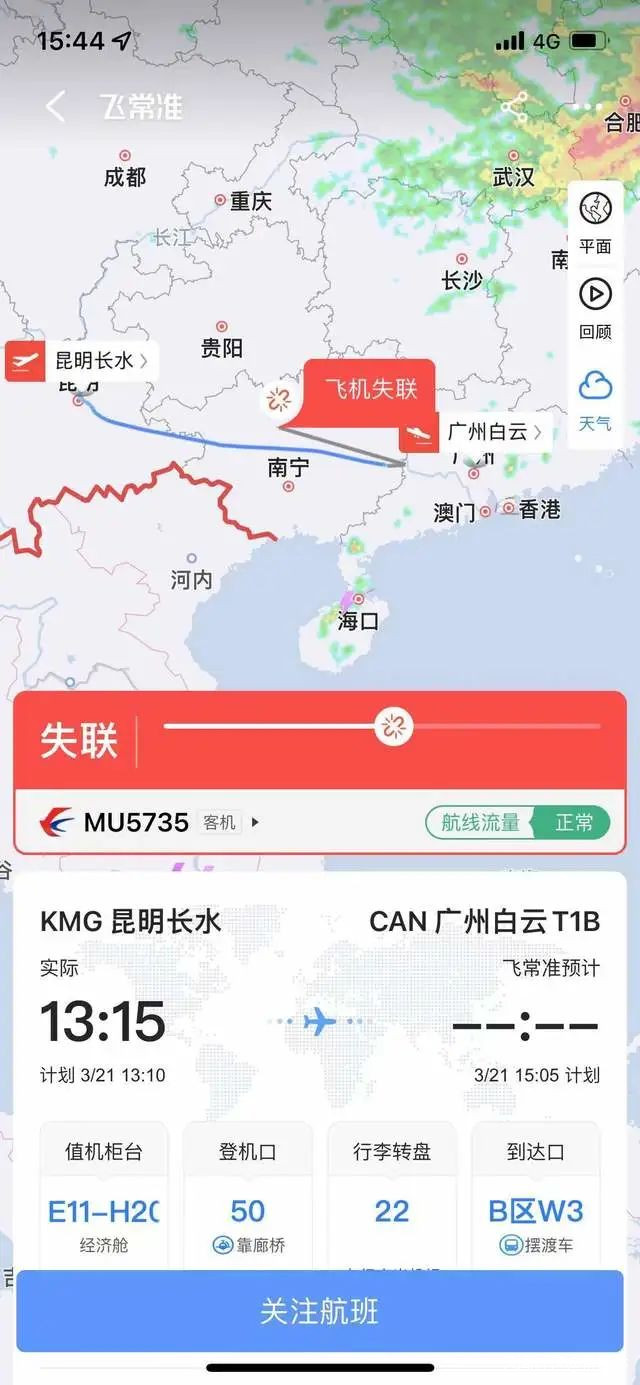 聊天記錄裏,有人發現東航MU5735在航空軟件上顯示“失聯”:
