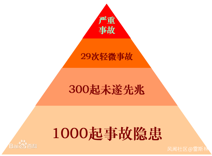 他認為民航界的不安全事故其實都是可以預防的,每一起嚴重事故的背後,必然有29次輕微事故和300起未遂先兆以及1000起事故隱患。