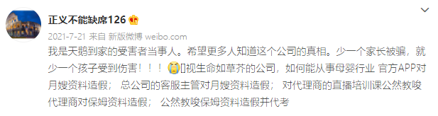 但讓人憤怒的是,事發僅第二天,尚未查明真相,天鵝到家就更改了涉事月嫂的合同日期,並將其立即安排給了下一個家庭。