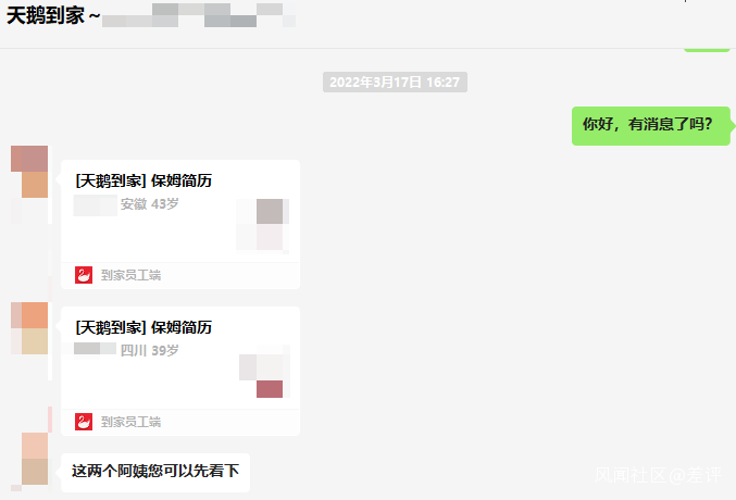 “ 當初有人和你承諾的保姆直營?哦,那個人早就離職了,是問題員工,他説的話可不代表我司立場。”