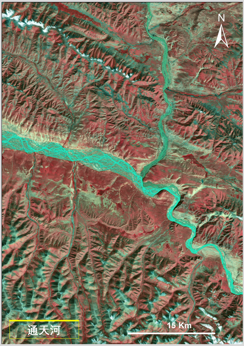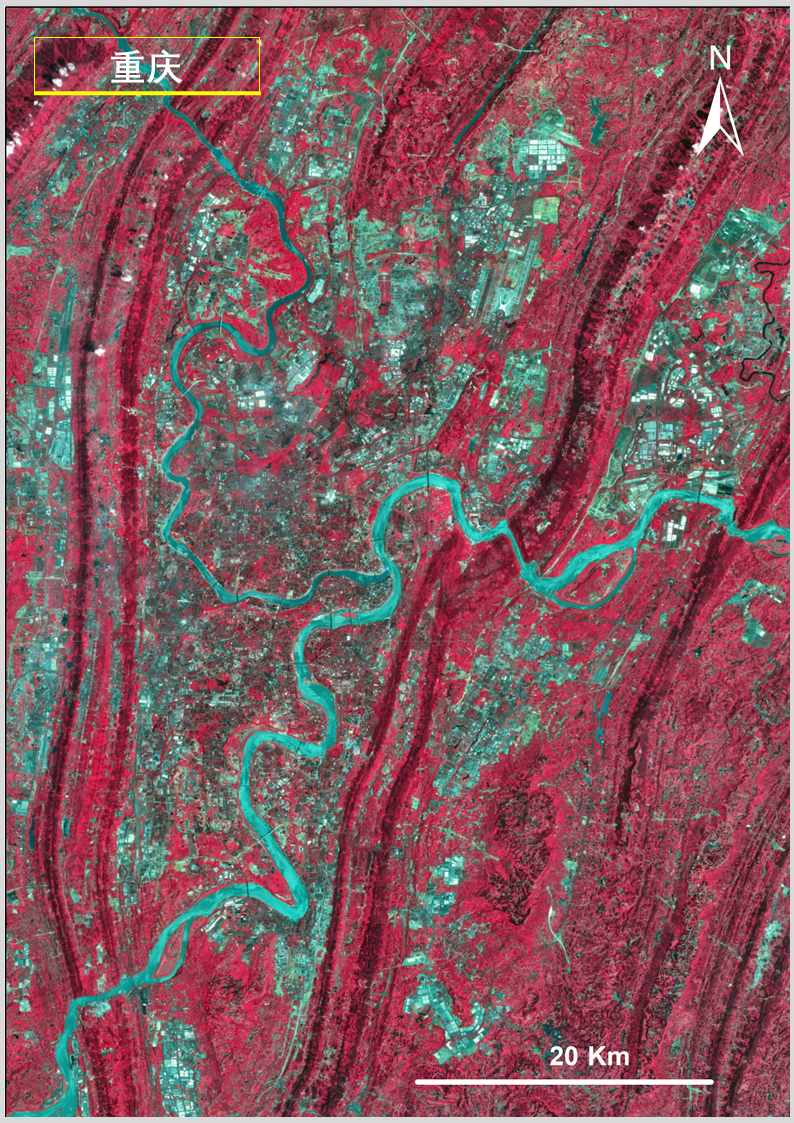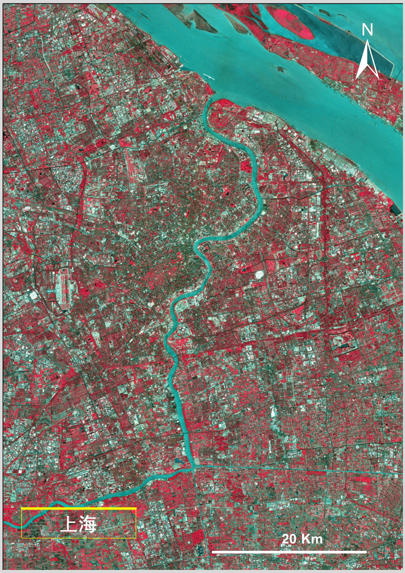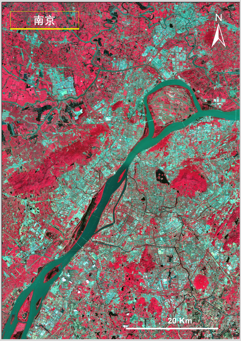 答:上述圖像利用高分一號衞星寬幅相機(WFV)獲取的數據製作,WFV具有藍、綠、紅、近紅外4個波段。水體在近紅外波段反射很弱,而植被在這個波段有強反射,將近紅外、紅、綠三個波段組合成外紅外影像,可以更清晰凸顯水體輪廓信息,便於觀察水體分佈情況。