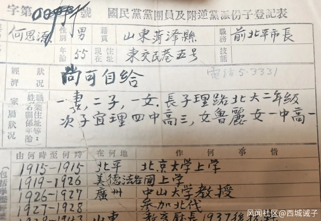 何思源畢業於北京京師大學堂,熟悉歷史的人都知道,這是北京大學的前身。他參加過新文化運動和五四運動,曾遊學美歐並回歸祖國主持教育和軍政事務。抗日戰爭期間組織部隊與日本侵略軍作戰,他任國民政府山東省主席兼保安司令。抗戰勝利後他任北平市(現北京市)市長,北平市和平談判首席代表。1949年後,他從事編譯工作,發揮其精通英、德、法、俄4種外語的特長,筆耕不輟,譯著甚豐。同時不忘祖國統一大業,為台灣早日迴歸祖國積極奔走。