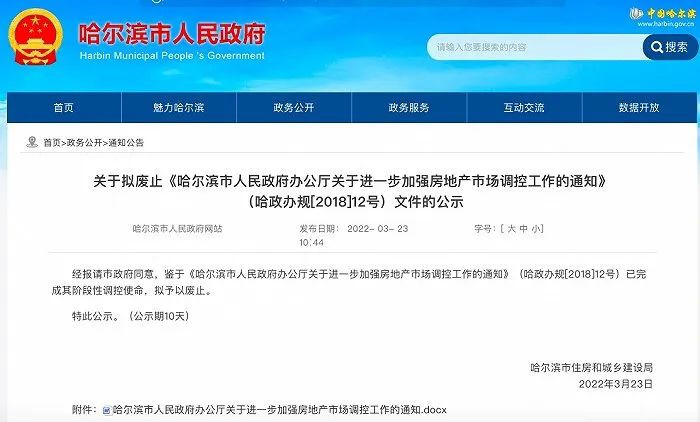哈爾濱市擬廢止實行區域性房地產限售政策