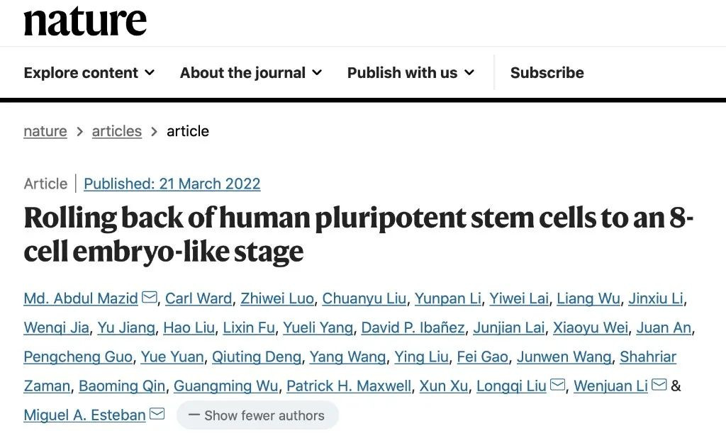 研究者們開發了一種非轉基因、快速且可控的“雞尾酒”細胞重編程方法,**能夠將人的多能幹細胞轉化為全能性的8細胞期胚胎樣細胞,**即相當於受精卵發育3天狀態的全能幹細胞。該成果將助力實現未來人體器官的體外再生,對解決器官短缺、異體和異種移植排斥反應等問題有着重大意義。