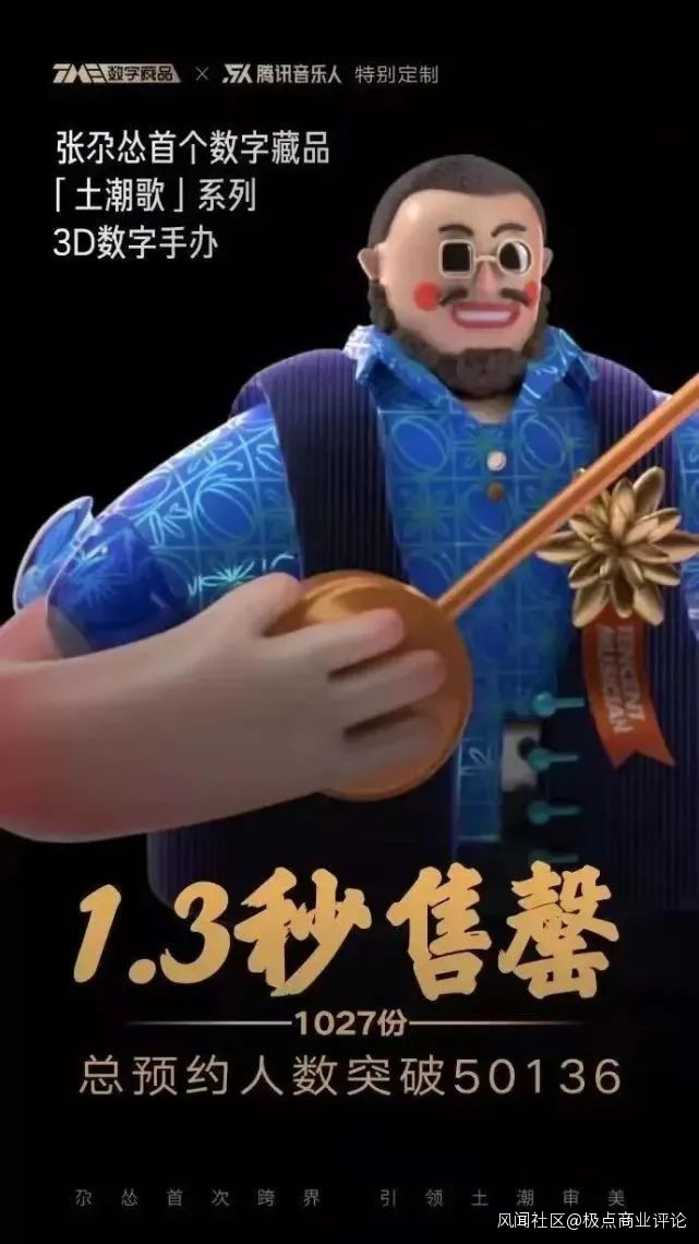 騰訊音樂也走在數字藏品新時代前沿。2021年,騰訊音樂率先在國內推出數字藏品平台,從胡彥斌二十週年黑膠《和尚》,到有聲《十三邀》黑膠唱片、張楚未公開的數字磁帶《山羊》,以及最新張尕慫的3D手辦系列盲盒「土潮歌」,快速售罄背後,正是騰訊音樂數字藏品支持音樂人多元創作表達的同時,探索更多音樂與藝術碰撞的可能性。