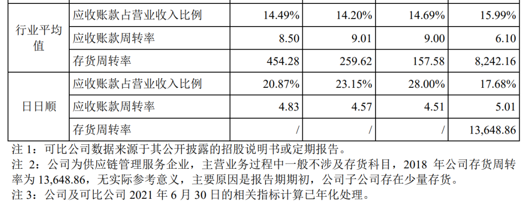 但值得注意的是,日日順的應收賬款佔營收的比重顯著高於同行業可比公司,也會影響到其現金流表現。