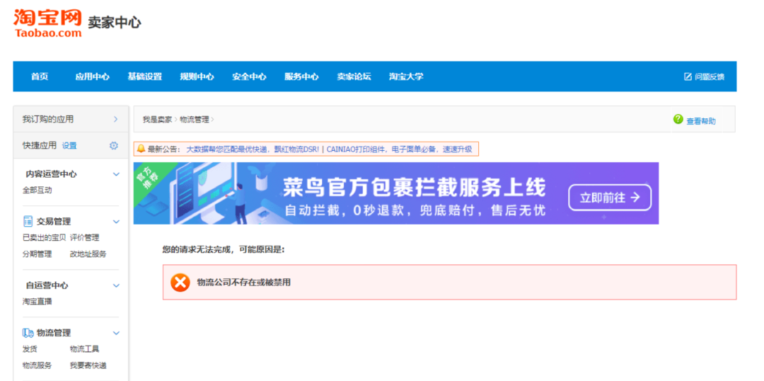 在黑貓投訴上有不少淘寶賣家表示,在淘寶發貨時,無法使用京東快遞發貨,只要出現京東字樣的快遞,直接不能輸入。