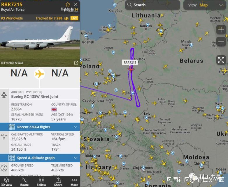 ▲英軍RC-135S偵察機多次在波蘭和白俄羅斯一線進行巡航