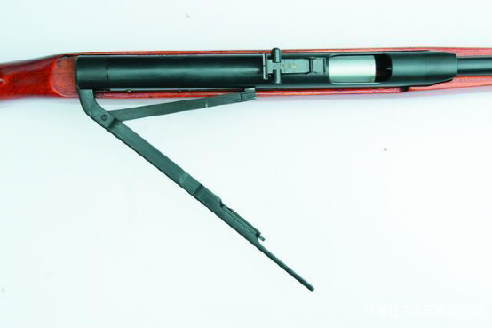 這款EM45B-3最大特點就是使用了和56-2和81-1步槍一樣的摺疊託,保險裝置也和81-1如出一轍,再加上整個槍的鋼木結構,軍用色彩很濃,有老外稱之為中國“AK”氣槍。