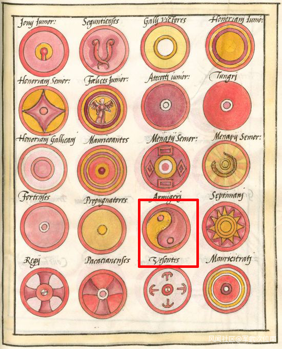 無獨有偶,在公元前五世紀的凱爾特文明中,也有類似的太極圖標誌,這種太極圖經過厄特魯尼坎人的學習,傳遞到了古羅馬人手中,於是古羅馬也學會了這種圖案,然後被用在了自己的盾徽上。