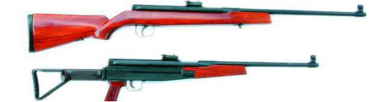 後來,建設廠為這款氣槍增設了隨動保險機構,誕生了EM45B-2,然後根據國外客户反饋,將槍托改成了摺疊託,攜行更加方便,這次被繳獲的EM45B-3就是這款摺疊託版本。