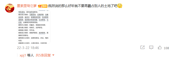 還有網友表示,既然把話説的那麼好聽,那就請美國不要再霸佔別人的土地了。
