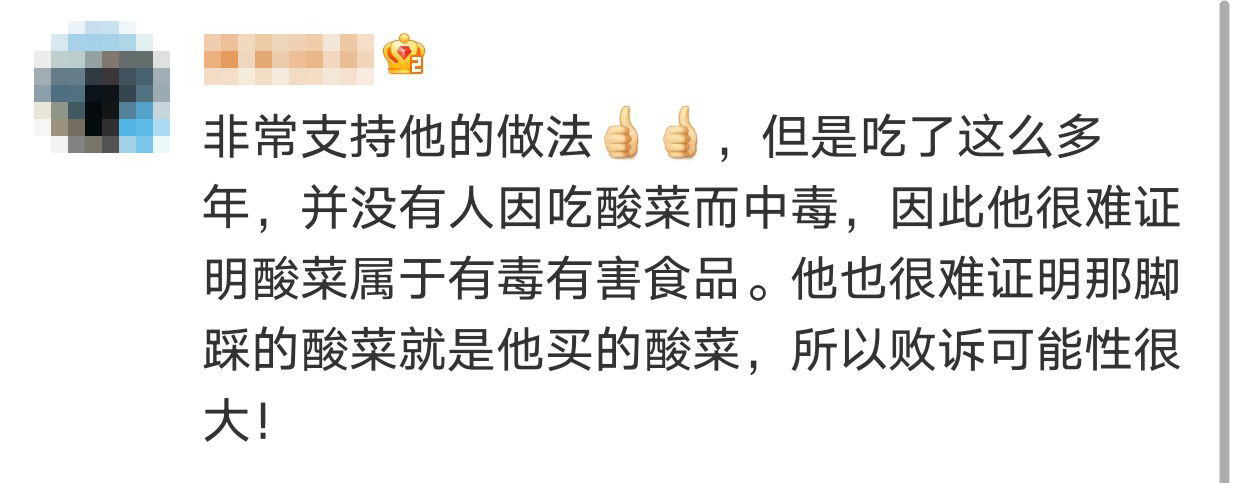 據微博中所屬,這名律師本身也特別喜歡吃老壇酸菜面,當他得知裏邊面裏邊的酸菜是由工作人員腳踩醃製的時候,他感到大受打擊。
