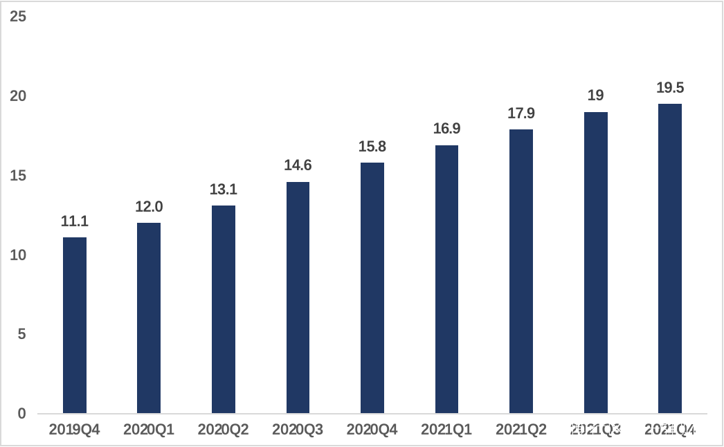 (2019Q4-2021Q4TME在線音樂訂閲收入)