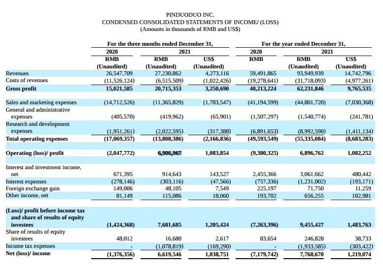 拼多多 Q4 財報,成本和營收的變化