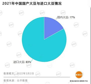 2021年,中國進口大豆佔比83% 圖片來源:新禽況