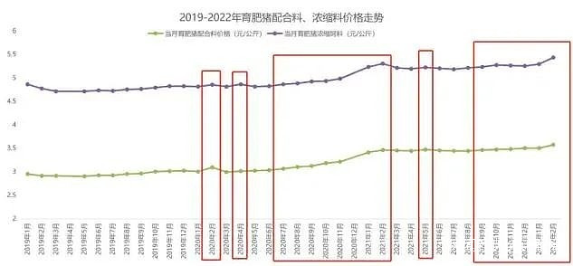 2019-2022年育肥豬配合料、濃縮料價格走勢