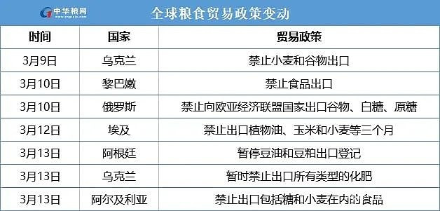 由於俄烏兩國都是農業出口大國,卻處於戰爭之中,導致大宗農產品價格上漲,各國貿易保護主義抬頭。