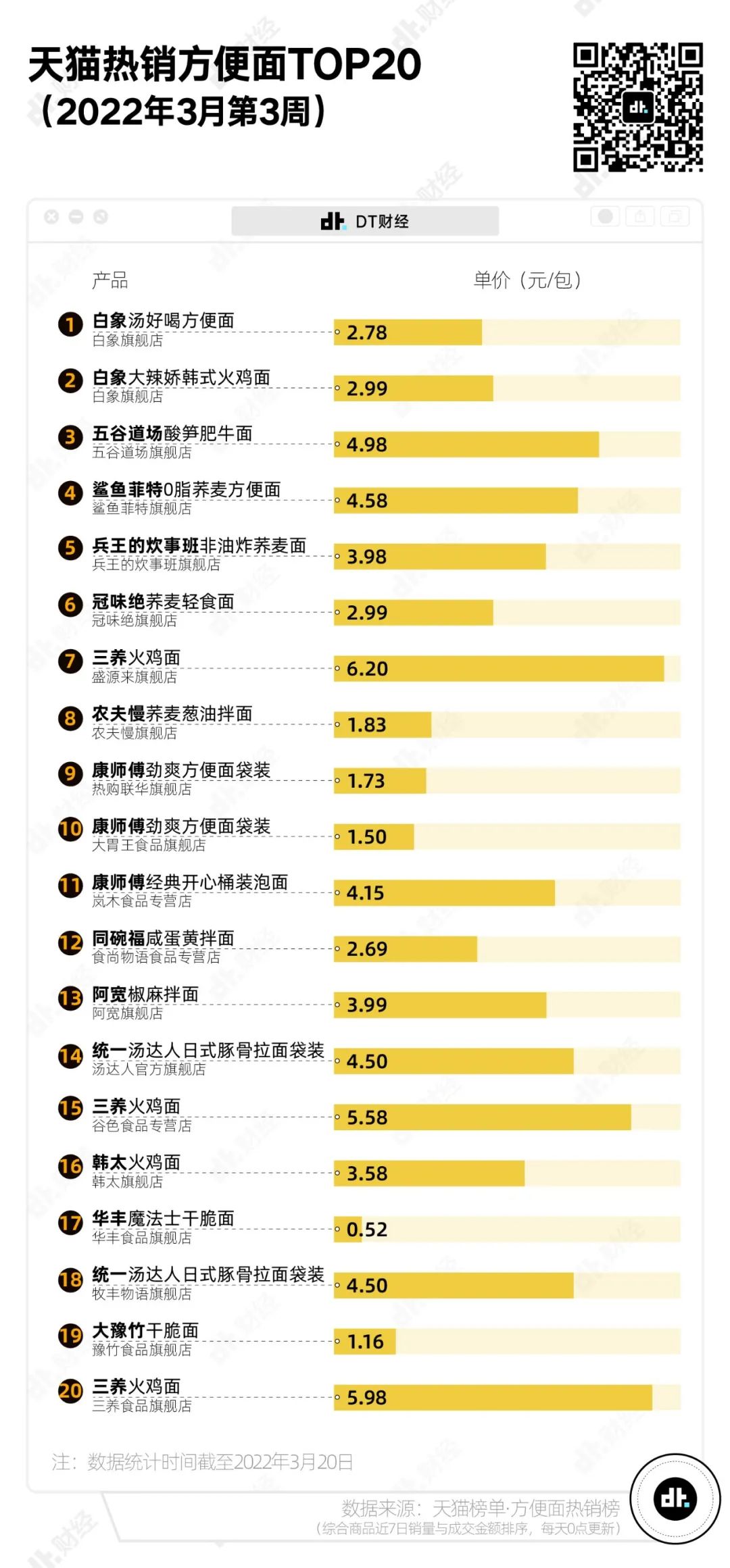 為了找到大家都在吃什麼泡麪,我們“端詳”了一下天貓的方便麪TOP20熱銷榜單。