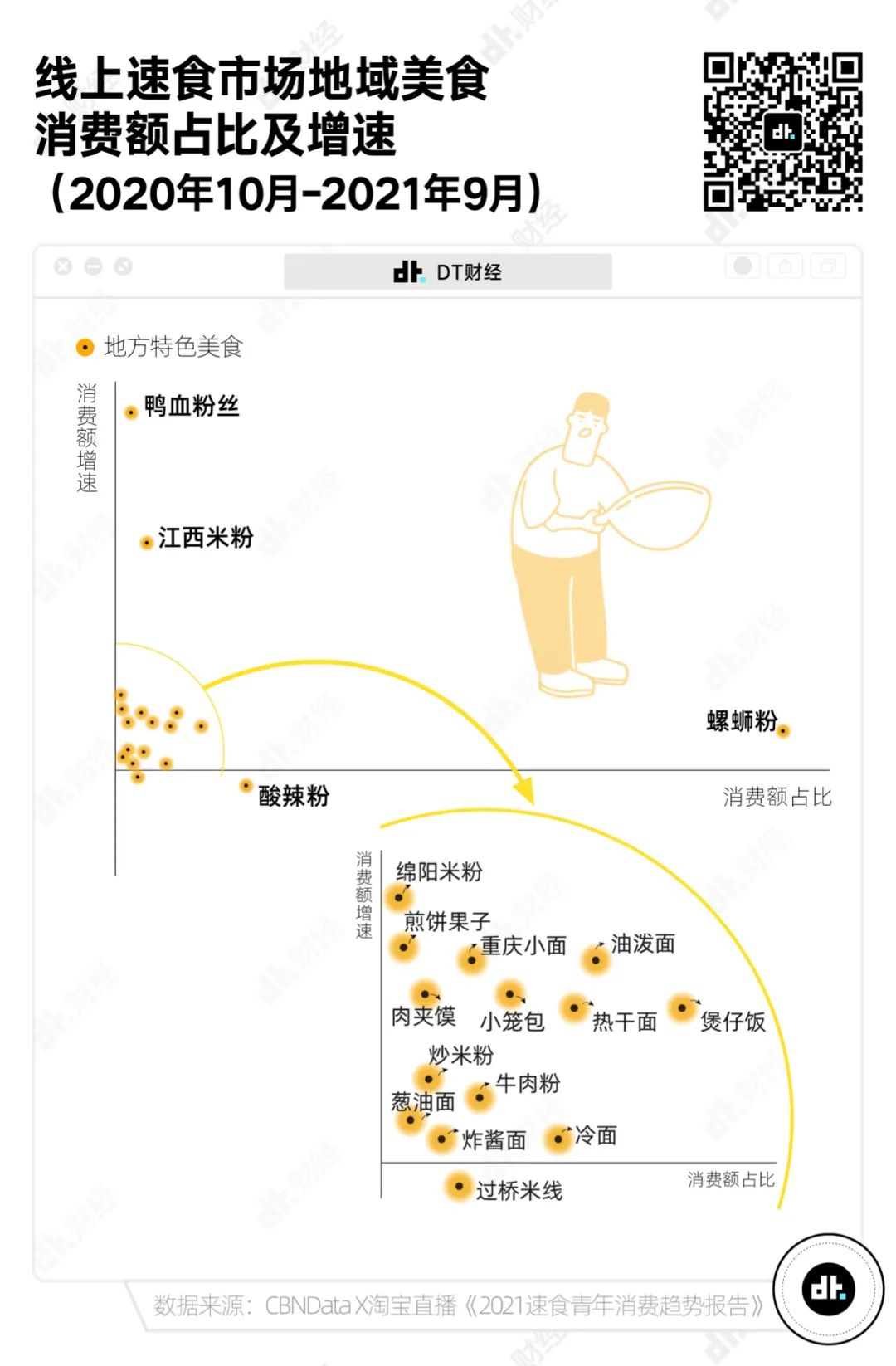 根據CBNData發佈的《2021方便速食行業洞察報告》,除了已經佔據市場大頭的螺螄粉,近年來也湧現出不少增長迅速的地域美食,例如鴨血粉絲、江西米粉等等。各地美食那麼多,即使不便動身旅遊,也能在家嘗試點新鮮口感。
