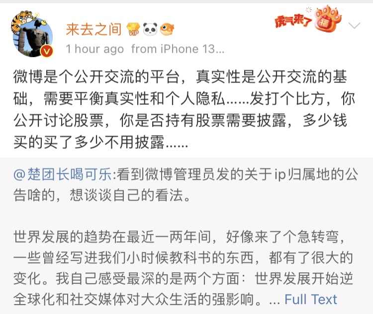 看到微博管理員發的關於ip歸屬地的公告啥的,想談談自己的看法。