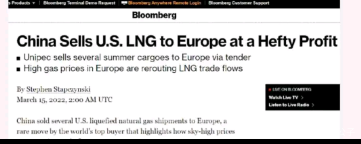 然而其實是從中國手裏買,因為中國之前和美國簽過一個20年的天然氣售賣合同,於是中國轉手就把“美國天然氣”賣給了歐洲,然自己再從俄羅斯買打折天然氣。