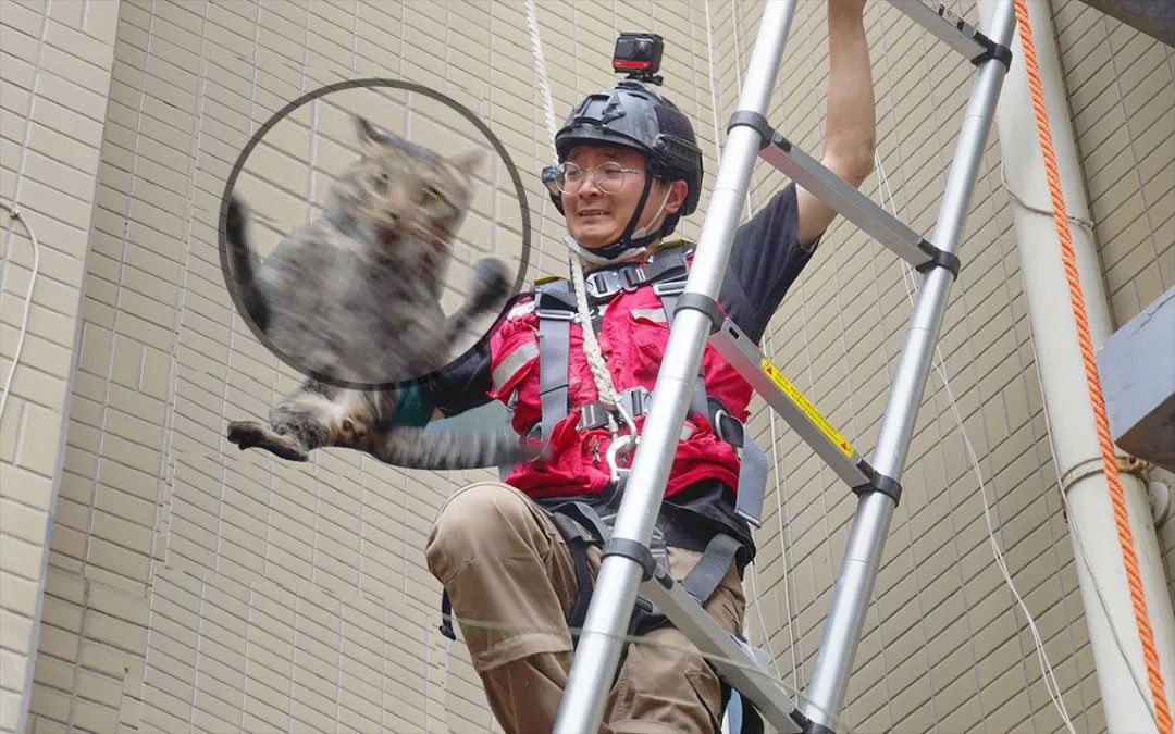 上天入地是貓咪消防員的工作常態。許哲下過窖井,爬過高樓,被吊在半空中。為了能更安全地把貓咪救下,許哲甚至去考了高空作業證。