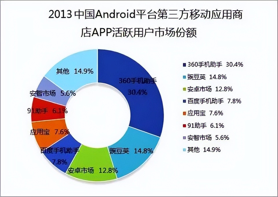 從數據來看,2013年的國內Android應用商店市場還是以第三方應用商店主導。