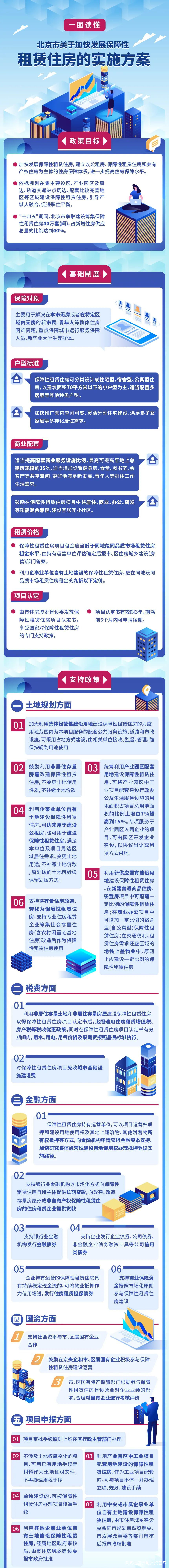 3月18日,北京市人民政府辦公廳印發《北京市關於加快發展保障性租賃住房的實施方案》的通知(以下簡稱《方案》)。該《方案》明確了北京市將在“十四五”期間,保障性租賃住房的供給數量,同時在加快規劃建設和規範運營管理等方面給出了具體要求,全方位明確了審批流程、土地、税費、金融等各類支持政策。