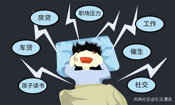 失眠影響正常工作和生活,易患心腦血管疾病,甚至誘發交通事故等意外而危及公共安全;可出現情緒紊亂、精神衰弱,嚴重者可後出現心理障礙、輕生自殺;還可導致免疫功能失調,誘發或加重心臟疾病、高血壓、糖尿病等。失眠障礙和焦慮抑鬱障礙之間存在雙向促進,形成惡性循環的風險。