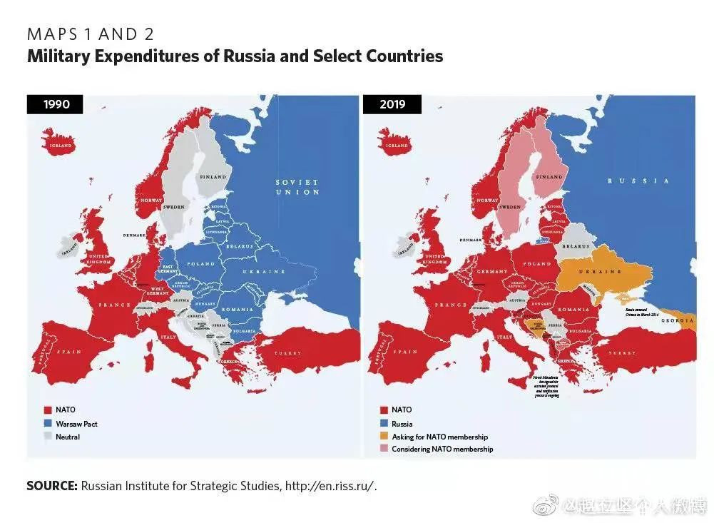 前前後後一共五次東擴,一直擴到了俄羅斯人的家門口——波羅的海三國,還跟烏克蘭和格魯吉亞眉來眼去,遞小紙條,撩騷人家。