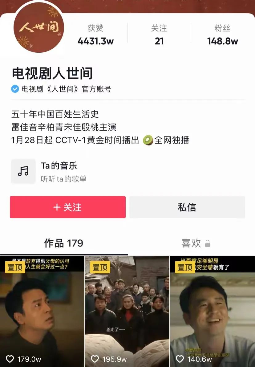 影視公司早就在宣發上加速擁抱短視頻,現在的二創主流,除了粉絲自發製作的fanvid或影視解説號,越來越多劇方和片方也都加入了二創內容生產中來。比如前段時間熱播的《人世間》便在抖音開通了電視劇官方號,剪輯了劇中父子的衝突瞬間,拋出了家庭關係的相關探討,這條二創下,人們踴躍發言,暢談自己的看法。