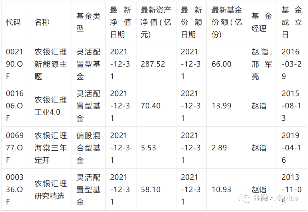 目前,趙詣名下共有農銀匯理新能源主題、農銀匯理工業4.0、農銀匯理海棠三年定開、農銀匯理研究精選4只在管基金,合計規模超過400億元。其中,農銀匯理新能源任職回報達到305.31%,年化回報72.29%,排名仍在行業內領跑。在趙詣選擇更換舞台後,基民們將何去何從?